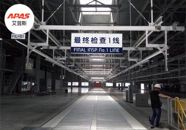 | 滄州現(xiàn)代汽車生產(chǎn)基地最終檢查線(由艾普斯項目部2部負責施工)。 |