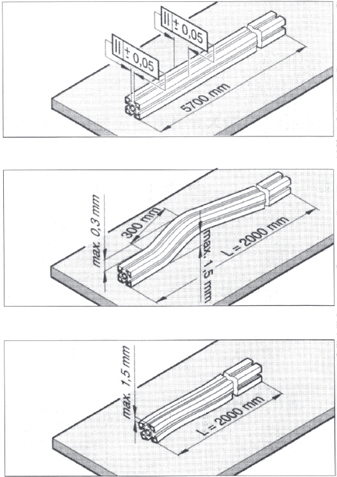 2:鋁型材的直線度:至300mm長(zhǎng)度內(nèi)不大于±0.3mm, 在2000mm長(zhǎng) 度范圍內(nèi)不超過(guò)±1.5mm。 |