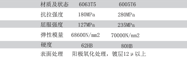 工業(yè)鋁型材機械性能:工業(yè)鋁型材并不是單一的一種型材,分為很多種材質(zhì),如:6005、6063等不同規(guī)格材質(zhì)的型材強度有所不同,在選材的時候要考慮工業(yè)鋁型材的用途以及需要承受力的整體分析,主要從抗拉強度、屈服強度、彈性模量、需要多大承重力等來選取興才需要多大硬度。