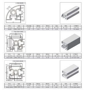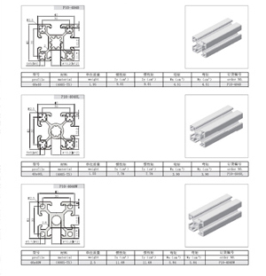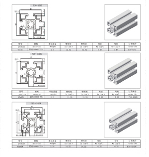 4040系列: 10mm槽寬的工業(yè)鋁型材系列 40系列包括:P10-4040 P10-4040L P10-4040W P10-4040R P10-4040-2N90 P10-4040-2N180 P10-4060 P10-4080 P10-4080L P10-4080W P10-40120 P10-40160 P10-8080 P10-8080W P10-80120. |