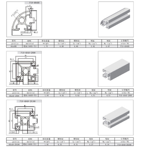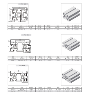| 50系列包括以下系列型號:P10-5050 P10-50100 P10-100100 | 60系列型材包括以下型號:P10-6060 P10-6060L |