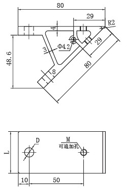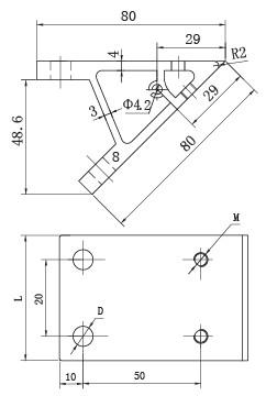 45°型材角件 20系列 長(zhǎng)80mm 寬38mm 槽6 訂貨號(hào):CE-L8080-2038