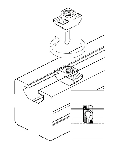 用途:T型螺母塊可將其他連接件簡單的固定至型材槽坑上,裝配過程中能自動定位、自動鎖緊